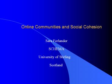 Online Communities and Social Cohesion PowerPoint PPT Presentation