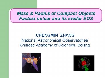 1Mass Radius of Compact Objects Fastest pulsar