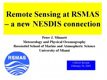1Remote Sensing at RSMAS a new NESDIS connection