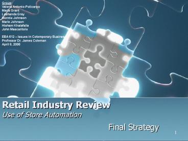 Electronic Shelf Label (ESL) speeds up the companys price changes and ensures accuracy Manual process 3400 people hours/per store 36,550 per store 438,600 total/ yearly Incorrect priced merchandise and time intensive manual process Ave. 12,400 wireless labels x 12 stores x Ave Shelf labels cost per unit - .75 111,600 total or 9,300 per store One time investment Reduced dedicated staff time by 15 2 year ROI FY 2001 4 mos. ROI- FY 2006