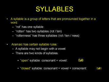 <Notice: Removed> SYLLABLES PowerPoint PPT Presentation