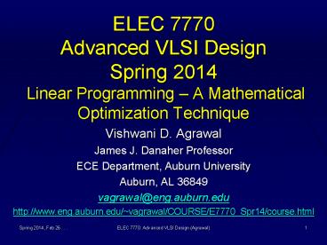 <Notice: Removed> ELEC 7770 Advanced VLSI Design Spring 2014 Linear Programming PowerPoint PPT Presentation