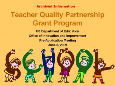 <Notice: Removed> Teacher Quality Partnership Grant Program PowerPoint PPT Presentation