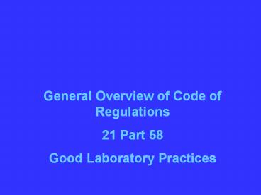 4 Chapter 1, Title 21 CFR 58 Subpart A General