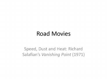 Road Movies Speed, Dust and Heat: Richard Salafian s Vanishing Point (1971) Genre Definition Bonnie and Clyde (1967) and Easy Rider (1969) genre defining origin ... – PowerPoint PPT presentation