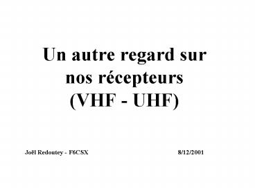 1Un autre regard sur nos récepteurs (VHF - UHF)