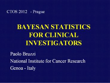 <Notice: Removed> BAYESAN STATISTICS FOR CLINICAL INVESTIGATORS PowerPoint PPT Presentation