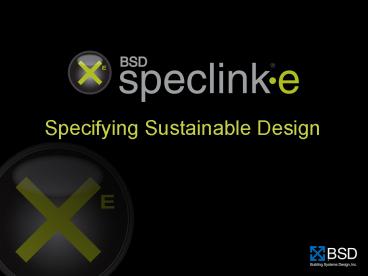 with as little or as much direction as desired - BSD SpecLink-E includes sustainable design