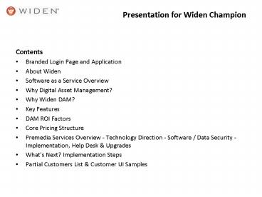 <Notice: Removed> Presentation for Widen Champion PowerPoint PPT Presentation