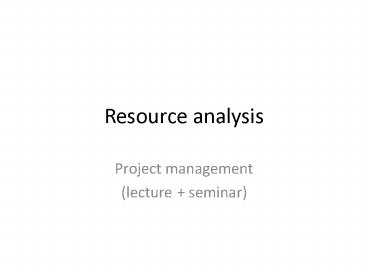 <Notice: Removed> Resource analysis PowerPoint PPT Presentation