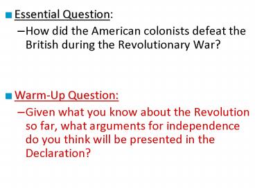 during the Revolutionary War? - Warm-Up Question