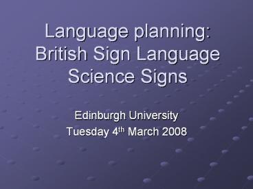 <Notice: Removed> Language planning: British Sign Language Science Signs PowerPoint PPT Presentation