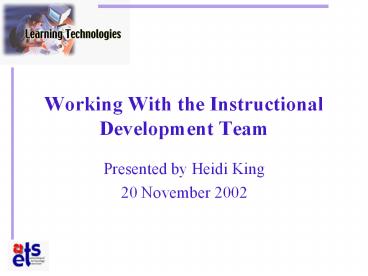 Working With the Instructional Development Team PowerPoint PPT Presentation