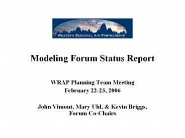 <Notice: Removed> Modeling Forum Status Report PowerPoint PPT Presentation