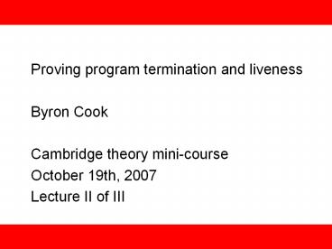<Notice: Removed> Proving program termination and liveness PowerPoint PPT Presentation