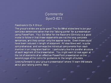 <Notice: Removed> Comments: SpeG 621: PowerPoint PPT Presentation