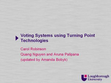 <Notice: Removed> Voting Systems using Turning Point Technologies PowerPoint PPT Presentation