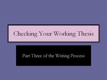 Checking Your Working Thesis PowerPoint PPT Presentation