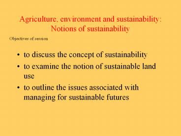 Title: Agriculture, environment and sustainability: Notions of sustainability