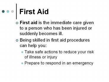 who has been injured or suddenly becomes ill. - Being skilled in first aid procedures can help