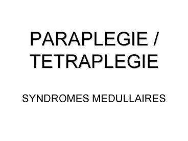 PARAPLEGIE / TETRAPLEGIE PowerPoint PPT Presentation