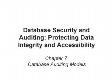 <Notice: Removed> Database Security and Auditing: Protecting Data Integrity and Accessibility PowerPoint PPT Presentation