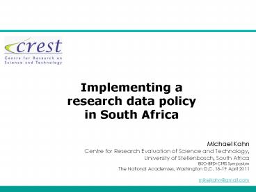 Stellenbosch, South Africa BISO-BRDI-CFRS