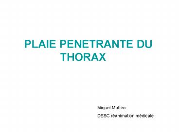 hémothorax, plaie pulmonaire Diagnostic RXT ou