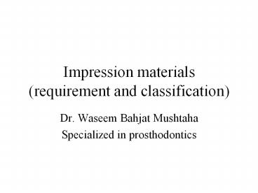 <Notice: Removed> Impression materials (requirement and classification) PowerPoint PPT Presentation