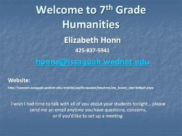 <Notice: Removed> Welcome to 7th Grade Humanities PowerPoint PPT Presentation