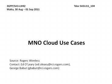 <Notice: Removed> MNO Cloud Use Cases PowerPoint PPT Presentation
