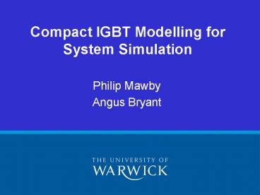 Compact IGBT Modelling for System Simulation PowerPoint PPT Presentation