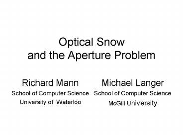 <Notice: Removed> Optical Snow and the Aperture Problem PowerPoint PPT Presentation