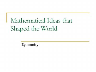 <Notice: Removed> Mathematical Ideas that Shaped the World PowerPoint PPT Presentation