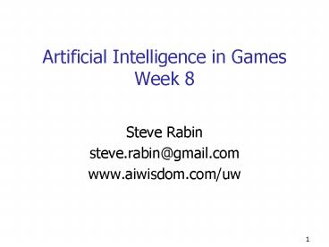 1Artificial Intelligence in GamesWeek 8