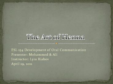 Title: The Art of Henna Author: Al-Sharif Last modified by: Al-Sharif Created Date: 4/17/2011 11:10:25 PM Document presentation format: (3 ... – PowerPoint PPT presentation