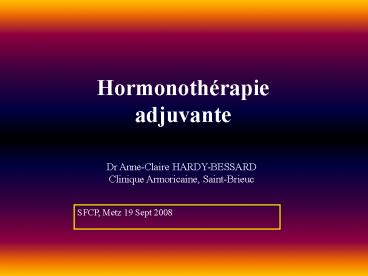Hormonoth rapie adjuvante Dr Anne-Claire HARDY-BESSARD Clinique Armoricaine, Saint-Brieuc SFCP, Metz 19 Sept 2008 – PowerPoint PPT presentation