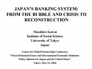 1JAPANS BANKING SYSTEMFROM THE BUBBLE AND