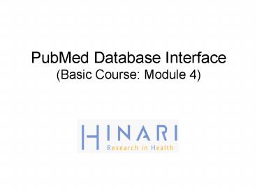 <Notice: Removed> PubMed Database Interface (Basic Course: Module 4) PowerPoint PPT Presentation