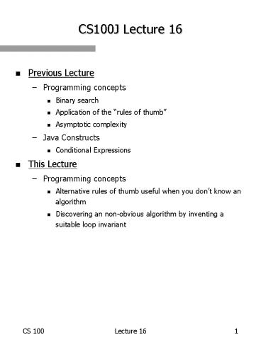 Title: CS100J Lecture 16