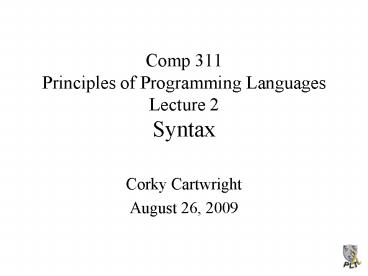 <Notice: Removed> Comp 311 Principles of Programming Languages Lecture 2 Syntax PowerPoint PPT Presentation