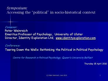Psychology - Peter Weinreich, University of Ulster, UK