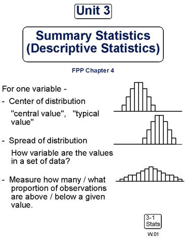 Title: Unit 3 Summary Statistics (Descriptive Statistics) FPP Chapter 4