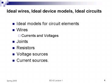 Title: Ideal wires, Ideal device models, Ideal circuits