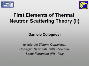1First Elements of Thermal Neutron Scattering