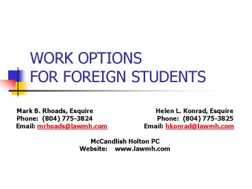 <Notice: Removed> WORK OPTIONS FOR FOREIGN STUDENTS PowerPoint PPT Presentation