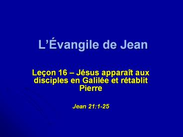• Leçon 16 Jésus apparaît aux disciples en