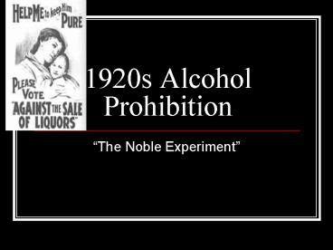 1920s Alcohol Prohibition PowerPoint PPT Presentation