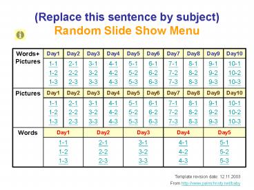 <Notice: Removed> (Replace this sentence by subject) Random Slide Show Menu PowerPoint PPT Presentation