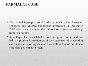 listing on the Milan stock exchange since 1987. - Parmalat financial problems can be traced back a